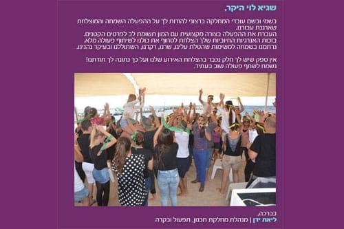 תודה ענקית על הפעילות המדהימה הרוח, האנרגיות והשיתוף שלך עשו את כל ההבדל .